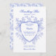 Host a stylish and memorable bridal shower with this “Something Blue Before I Do” invitation, featuring an elegant floral crest on the front and a delicate blue Chinoiserie botanical pattern with butterflies on the back. The refined design is complemented by flowing script typography, creating a classic and graceful look that’s perfect for a garden party or traditional bridal celebration. Ideal for blue-themed showers, this invitation blends vintage charm with modern elegance. Customise with your event details to set the tone for a beautiful and heartfelt gathering.