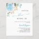 A chic white background. Decorated with a dusty blue floral, rose flower and green watercolored eucalyptus leaves, sprigs, greenery and a faux gold sprig. Personalise and add the name of the bride to be and details. Text: Something blue before I do.