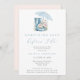 A pretty "something blue before "I do" bridal shower invitation with a watercolor illustration of blue rainboots, umbrella and blush pink peonies.