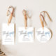 Modern thank you tags for your Bridal Shower party favours with blue bow. Perfect for a "She is tying the knot" themed Hen Party.