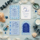 Celebrate in coastal style with this “Something Blue” bridal shower invitation inspired by the romance of the Amalfi Coast. The design features a deep cobalt blue arch framed by a Mediterranean tile border, accented with elegant white lettering and handwriting-style script for a modern, breezy feel. Printed on an on-trend arch-shaped card (with the option to switch to a rectangle or other silhouettes), this invitation blends seaside charm with chic Italian style. The reverse showcases the full Mediterranean tile pattern, creating a cohesive and beautiful look your guests will love. Perfect for coastal, beach, seaside, or “That’s Amore!” themed bridal showers — and beautifully coordinated with both the Something Blue Bridal Shower and the Amalfi Coast Amore wedding collections.
