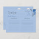 Elegant Calligraphy Script Something Blue Bridal Shower Themed Recipe Card with watercolor flowers. On the other side there are a glasses of champagne with a bouquet.