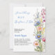 A chic white background. Decorated with a wildflowers in pink, blue, yellow. Personalise and add the name of the bride to be and party details. Text: Something blue Before I do