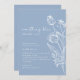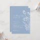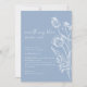 A elegant blue white invitation for your bridal shower features a line art floral arrangement with the quote SOMETHING BLUE BEFORE I DO. Personalize all the of the important details such as bride's name, shower date, location and registry information.