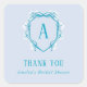Say "Thank You" to your bridal shower guests with this custom favour sticker. This hand drawn design features a blue and white floral crest with an initial monogram. This design is perfect for a "Something Blue" bridal shower event. The delicate white florals are reminiscent of hydrangeas and baby's breath. This elegant and timeless monogram crest design is sure to set the perfect tone for your bridal shower. You can find coordinating designs in my Zazzle store, Ashlee Townsend Design.