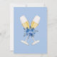 Elegant Calligraphy Script Something Blue Bridal Shower Themed Invitation with watercolor flowers. On the other side there are a glasses of champagne with a bouquet.