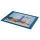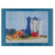 This original quirky still life picture on this great glass cutting board was painted in soft pastel, the bright shades and hues that can be found in soft pastel really bring out the amazing colours of this delicious serving of mixed vegetables. I came to produce this painting of red and green peppers, carrots, courgettes and other vegetables on a chopping board as a tongue in cheek alternative to the typical still life painting of a bowl of fruit which I was asked to paint as part of an art course I was working on, I named the painting “Not A Bowl Of Fruit.” This great blue glass cutting board looks very impressive with it’s own original piece of still life art, and not only is it perfect for preparing your meals on, it will also look great on a dinning table with cheese or other tasty treats served on it. It makes a unique gift for someone special or perhaps you just want to treat yourself to an unusual and quirky cutting board.