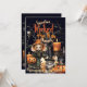 Gothic Party. Halloween Wedding. Custom design invitations for those who prefer something on the stylish dark side. Atmospheric mood with gnarly tree, skull, orange spice candles burning, fluffy top hat cat, emo girl, gothic child, - Made here into a Wedding invitation but its easy enough to customise and change the text to suit any type of event with a Halloween, Gothic theme. All the text including the font style and colour is fully customisable..