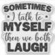 This hilarious design is perfect for anyone who loves to laugh and talk to themselves. Featuring the phrase "Sometimes I Talk To Myself Then We Both Laugh," it's a great way to show off your funny side. Want to add some humour to your wardrobe? Look no further than this "Sometimes I Talk To Myself Then We Both Laugh". Whether you're hanging out or running errands, this desigm is sure to make everyone smile.