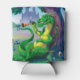 A smiling green dragon leans back against a tree after enjoying his snack from the big battle.
