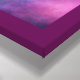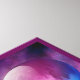Against a backdrop of royal blue and intricate hot pink clouds like distant galaxies is a single smooth glass orb with a swirling fractal suspended inside.
