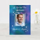 Honour your son’s academic excellence with a card that reflects the prestige of his Master’s degree. His photo and name appear in a bold framed layout, accented by symbols of success and a rich, celebratory background of watercolor blues, purples, and greens. A dignified and personal tribute to years of hard work, growth, and ambition fulfilled.