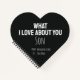 Create a lasting treasure for your son with this "What I Love About You Son" customizable notebook! This heartfelt journal is designed for a mother or father to personalize with their Son's Name and their Own Name, transforming it into a meaningful keepsake. Featuring blank interior pages, it's perfect for writing special memories, sketching shared moments, or creating a unique collection of all the reasons you love him.