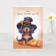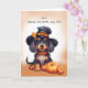 This Halloween, surprise your son with a card that's as adorable as he is! Inside, a loveable black and brown dog, wearing a funny witches hat, shares the spotlight with playful pumpkins. The soft watercolor wash background adds a touch of whimsy, and the fallen leaf on the hat enhances the card's cuteness. Share the 'Howl-oween' spirit and remind your son that he's a cherished treat in your life