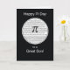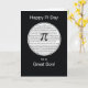 Send your son Pi Day wishes with this black card. A white circle is filled with the irrational numerals of Pi as the symbol is shown in front.