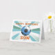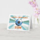 Surprise your favourite soccer fan on his Birthday with this amazing design in teal, blue, white and orange colours. A huge ball with a starburst and your words about celebration and a new winning year.