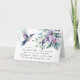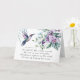 Beautiful greeting card with inspirational quote scripture depicts a lovely floral watercolor design with a hummingbird, simple lavender and purple flowers and greenery. It features an encouraging Bible Verse Song of Solomon 2:11-12, "For behold, the winter is past; the rain is over and gone. The flowers appear on the earth, the time of singing has come." The greeting, prayer can be personalised or deleted for a hand written message.