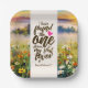 Paper plate with inspirational quote scripture depicts a beautiful nature watercolor including a meadow with white and yellow wildflowers and a sunrise over the mountains in the background. It features a beloved Bible Verse from Song of Solomon 3:4, "I have found the one whom my soul loves."