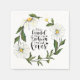 Inspirational quote scripture wedding napkins depict a simple floral watercolor wreath with white daisies and greenery. It features Bible Verse Song of Solomon 3:4, "I have found the one whom my soul loves."