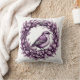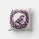 Purple illustration of cute songbird sitting wreath throw pillow