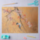 A captivating artwork of a songbird perched on a blossoming cherry tree branch. This elegant design combines traditional Asian aesthetic with modern luxury.