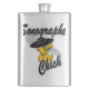 The product is a good size and came exactly as it was pictured. The lid is not attached to the flask, which could be dangerous on drunken nights... The print came out surprisingly well and looks very sharp. Would definitely recommend.