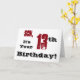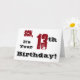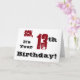 A white background featuring black and red text, on this fun, birthday greeting for a son. My Funny Mind Greetings.