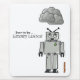 A dark cloud over a metal robot is bad news. This robot will be rusty soon.