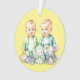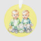 Birth or Pregnancy announcement. Cute blue and green themed Christmas ornament with two twins in blue and green. Twin boys announcement. Personalised the due date on the back.