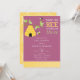 Bee theme Baby Shower invitation. Soon to BEE a family of three in a fun handwritten script featuring a honeycomb and bees. Different colour backgrounds available. Personalise with your information or click "click to customise further" to adjust font type, size, colour.