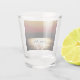 A shot glass featuring a photo of a sunset over Sooner Lake located in Oklahoma.