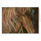Red and gold on black lends a dramatic touch to this highly detailed portrait of a chestnut mare. Conte crayon.