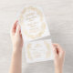 Sophisticate Faux Foil Script Gold Baroque Wedding All In One Invitation