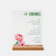 Sophisticated Black Floral Beverage Menu Acrylic Sign