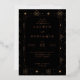 This elegant wedding invitation features a sophisticated black and gold colour palette, creating a luxurious and festive atmosphere. The design showcases a symmetrical layout with decorative elements such as stars and fireworks framing the central text block, enhancing its celebratory feel. With clean lines and flat colours, it combines modern aesthetics with classic charm, making it perfect for formal events. The typography is carefully chosen to emphasise key details while maintaining readability, ensuring that your special day is communicated with clarity and style. Ideal for weddings, this invitation sets the tone for an unforgettable celebration.