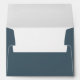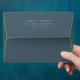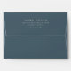This wedding envelope features a minimalist design with a solid navy blue background and elegant white text. The layout is clean and balanced, showcasing the names "Lauren + Charlie" in a prominent serif font at the top, followed by an address and city details in smaller but still stylish lettering. The overall aesthetic is modern and understated, conveying sophistication and formality without any additional decorative elements. Perfect for formal announcements or invitations, this design emphasizes clarity and elegance through its restrained color palette and classic typography.