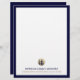 Make a strong impression with our Sophisticated Blue and Gold Business Letterhead. This letterhead design features a white background framed in navy blue with a gold seal logo emblem that can be used as is or customised with your brand; your company name and contact information are elegantly presented in golden classic typography. The back is solid navy with a smaller logo emblem in the lower thirds, bringing cohesion to this professional design. Each sheet exudes professionalism and sophistication, making it perfect for official correspondence and important business documents. Elevate your brand identity with this exquisite letterhead.