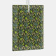 Seamless floral pattern with green leaves and buds on a dark background, featuring intricate blue and beige branches, evoking a natural, elegant feel.