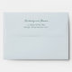 This wedding envelope features a minimalist design with centred text on a plain white background, creating an elegant and uncluttered look. The names are written in a flowing script font in a soft greenish-blue colour, while the address is presented in a clean sans-serif font for clarity. The overall style is modern and understated, perfect for conveying sophistication without unnecessary embellishments. Ideal for couples seeking a refined yet simple aesthetic for their special day.