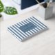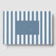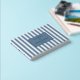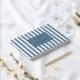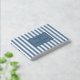 This wedding guest book features a classic nautical theme with vertical stripes in two shades of blue, creating a crisp and elegant look. The design includes a central navy rectangle that highlights customisable text in a clean, modern sans-serif font, perfect for personalising the occasion. The minimalist style emphasises simplicity and sophistication, making it ideal for weddings or formal events. The calming blue tones evoke reliability and serenity, while the structured layout adds an air of precision and order.
