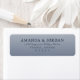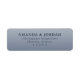 This return address label features a clean, centered layout with a calming gradient blue background that transitions from light to medium shades. The design utilizes elegant typography, combining a bold serif font for the names and a sleek sans-serif font for the address, ensuring clarity and sophistication. With ample negative space around the text, this minimalistic style emphasizes readability and formality, making it perfect for event invitations or formal correspondence. The overall mood is professional yet approachable, ideal for those seeking an understated yet refined aesthetic in their stationery.