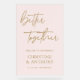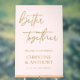 Elevate your wedding decor with our sophisticated blush pink and gold acrylic sign. This exquisite piece features elegantly scripted 'Better Together' words in luxurious gold, adding a touch of romance and charm to your celebration. Personalise it with your names and wedding date beautifully rendered in modern gold typography, creating a timeless keepsake for your ceremony or reception. The blush pink background enhances the acrylic material, lending an air of elegance and refinement to your special day. Ideal for couples seeking a chic and personalised touch to their wedding ambiance.