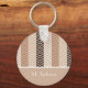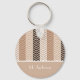 A sophisticated variegated brown chevron striped pattern keychain with stripes of brown, tan, and beige. Personalise this elegant zigzag design by adding your name to bring an elegant refined look to your personal style.