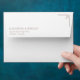 This wedding envelope features a minimalist design with a clean, elegant layout. The colour palette includes muted browns and light greys, creating a sophisticated and understated look. A stylised geometric symbol in the top right corner adds a touch of traditional East Asian flair, while classic serif fonts provide a formal yet modern feel. Perfect for couples seeking simplicity and refinement, this envelope is ideal for weddings that celebrate timeless elegance.