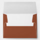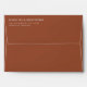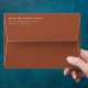 This wedding envelope features a minimalist design with a rich brown background and elegant white text, creating a sophisticated contrast. The layout is clean and centred, emphasising clarity and simplicity with ample negative space around the text blocks. Utilising classic serif typography in uppercase, it conveys a formal yet approachable tone, perfect for official announcements or invitations. Customisable placeholders allow personalisation for names and addresses, making it ideal for weddings or significant life events.
