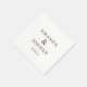 This elegant napkin design features a minimalist layout with clean lines and precise typography, perfect for formal events. The muted brown colour palette adds a touch of sophistication, while the serif font lends an air of classic elegance. Customisable text allows you to personalise it for special occasions like weddings or anniversaries, making it a versatile addition to your table setting. The simple yet refined aesthetic ensures that it complements any sophisticated celebration.