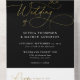 Sophisticated Calligraphy Black Gold White Wedding All In One Invitation