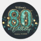 Sophisticated Chic Teal and Gold 80th Birthday Classic Round Sticker