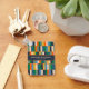 Long Blocks Retro Modern Minimalist Geometric Checked Pattern Blue Mustard Orange Eucalyptus. Sophisticated vintage contemporary aesthetic. Vintage mid-century modernist vibe. Rich colour palette. Text (names and date) can be personalised / customised. Great for weddings, engagements, anniversaries, and more. By Kierkegaard Design Studio.