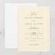 This elegant wedding invitation features a vertical layout with a soft, pastel colour palette of cream and light yellow tones. The design includes subtle diagonal stripes that add texture and depth, creating a sophisticated look. The typography is refined and classic, using an uppercase serif font for clarity and formality, with the conjunction "and" in a stylish cursive script. Perfect for a formal gathering, this invitation exudes warmth and celebration, making it ideal for couples seeking a timeless and graceful aesthetic for their special day.